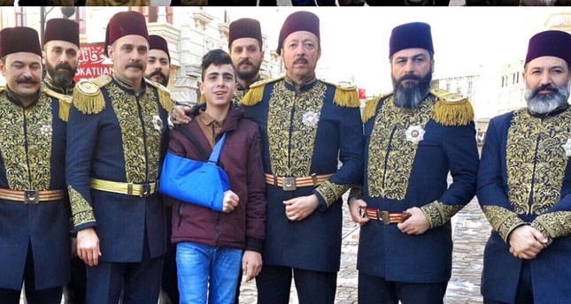 طاقم عمل مسلسل عاصمة عبد الحميد يستقبلون الطفل الفلسطيني فوزي الجنيدي Daily Sabah Arabic