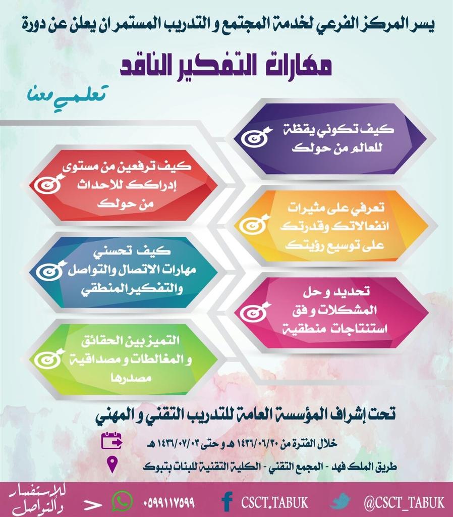 شبكة الدورات A Twitter تبوك دورة مهارات التفكير الناقد 30 جمادى الثانية Http T Co Dqnbr7hekc Csct Tabuk دورات تطوير الذات