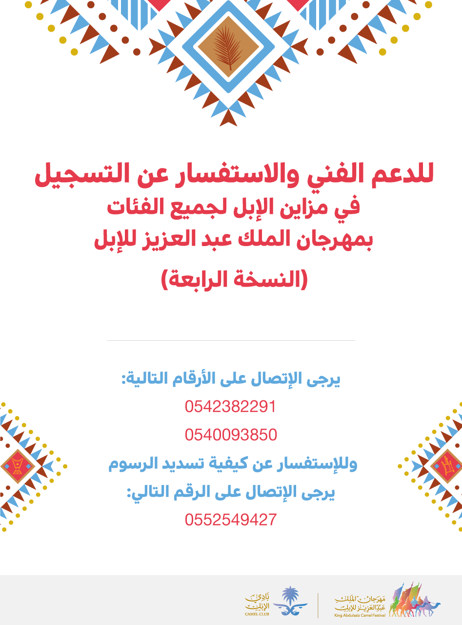 مهرجان الإبل On Twitter للمزيد من الاستفسارات حول التسجيل في مزاين الإبل يرجي الإتصال على الأرقام الموضحة مهرجان الملك عبدالعزيز للإبل 4