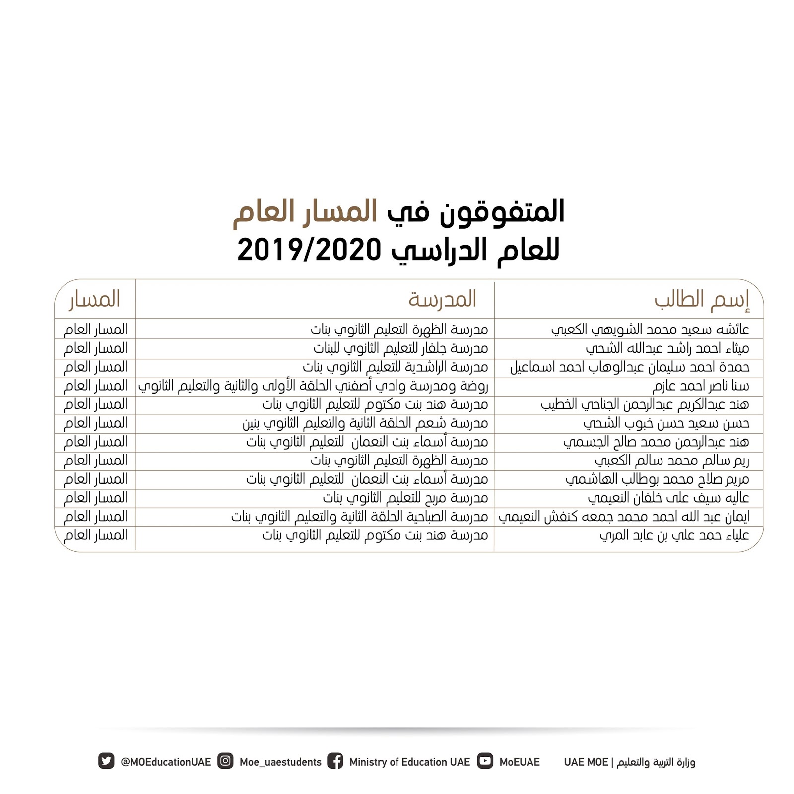 نتائج الثانوية العامة الإمارات المتفوقون في المسار العام 2019 2020