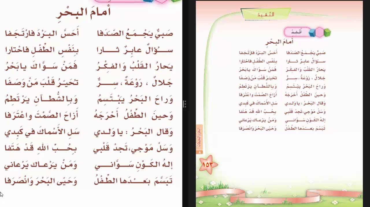 نشيد أمام البحر الصف الثالث ابتدائي الفصل الثاني المنهج الجديد 1442هـ Youtube