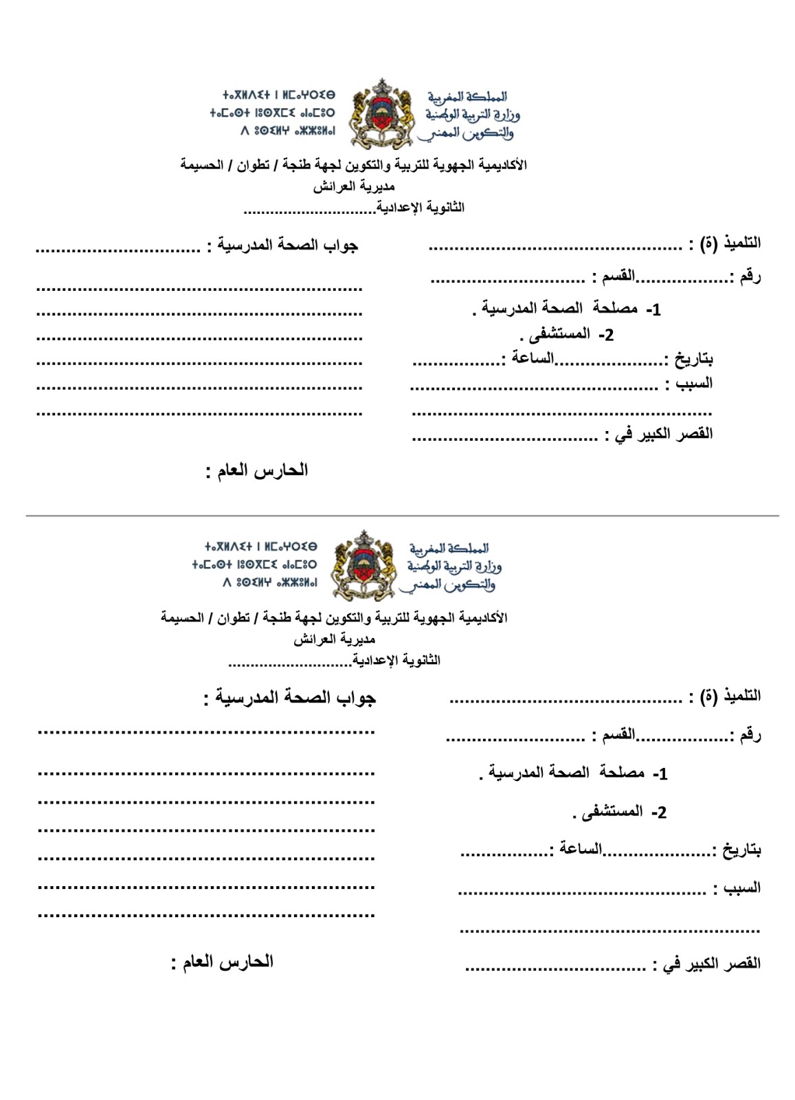 نماذج الصحة المدرسية