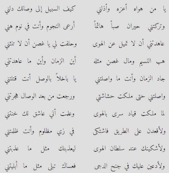يا من هواه أعزه وأذلنـــي كيف السبيل إلى وصالـــــك دلني وتركتني حيران صب ا هائم أرعى النجوم وأنت في نوم هني عاهدتني ألا تميل Arabic Quotes Words Quotes